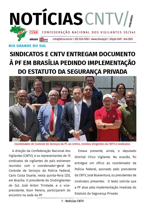 RIO GRANDE DO SUL - SINDICATOS E CNTV ENTREGAM DOCUMENTO À PF EM BRASÃLIA PEDINDO IMPLEMENTAÇÃO DO ESTATUTO DA SEGURANÇA PRIVADA