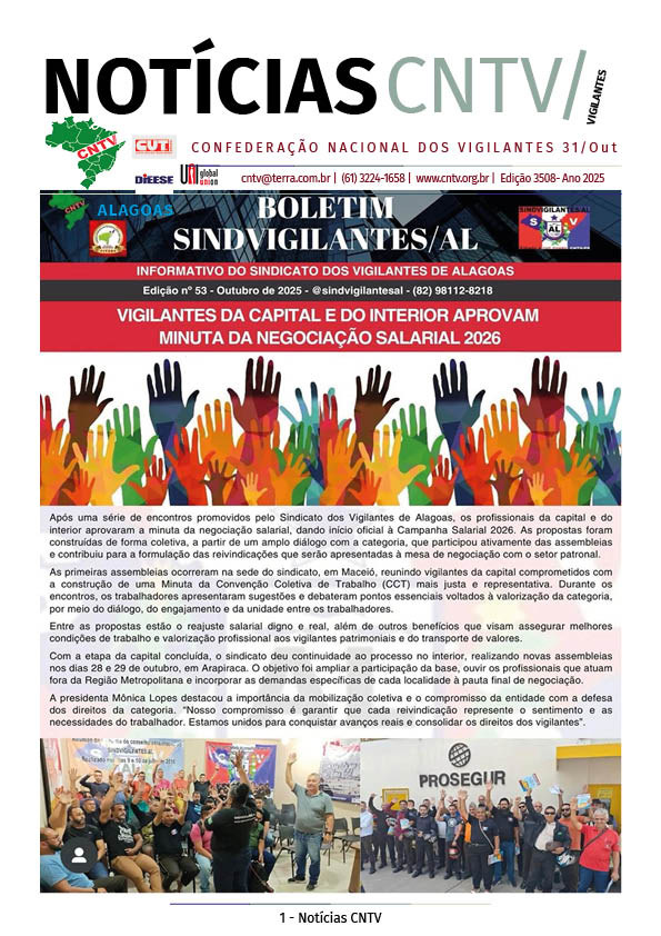 Boletim eletrônico 31/10/2025ALAGOAS - VIGILANTES DA CAPITAL E DO INTERIOR APROVARAM A MINUTA DA NEGOCIAÇÃO SALARIAL 2026